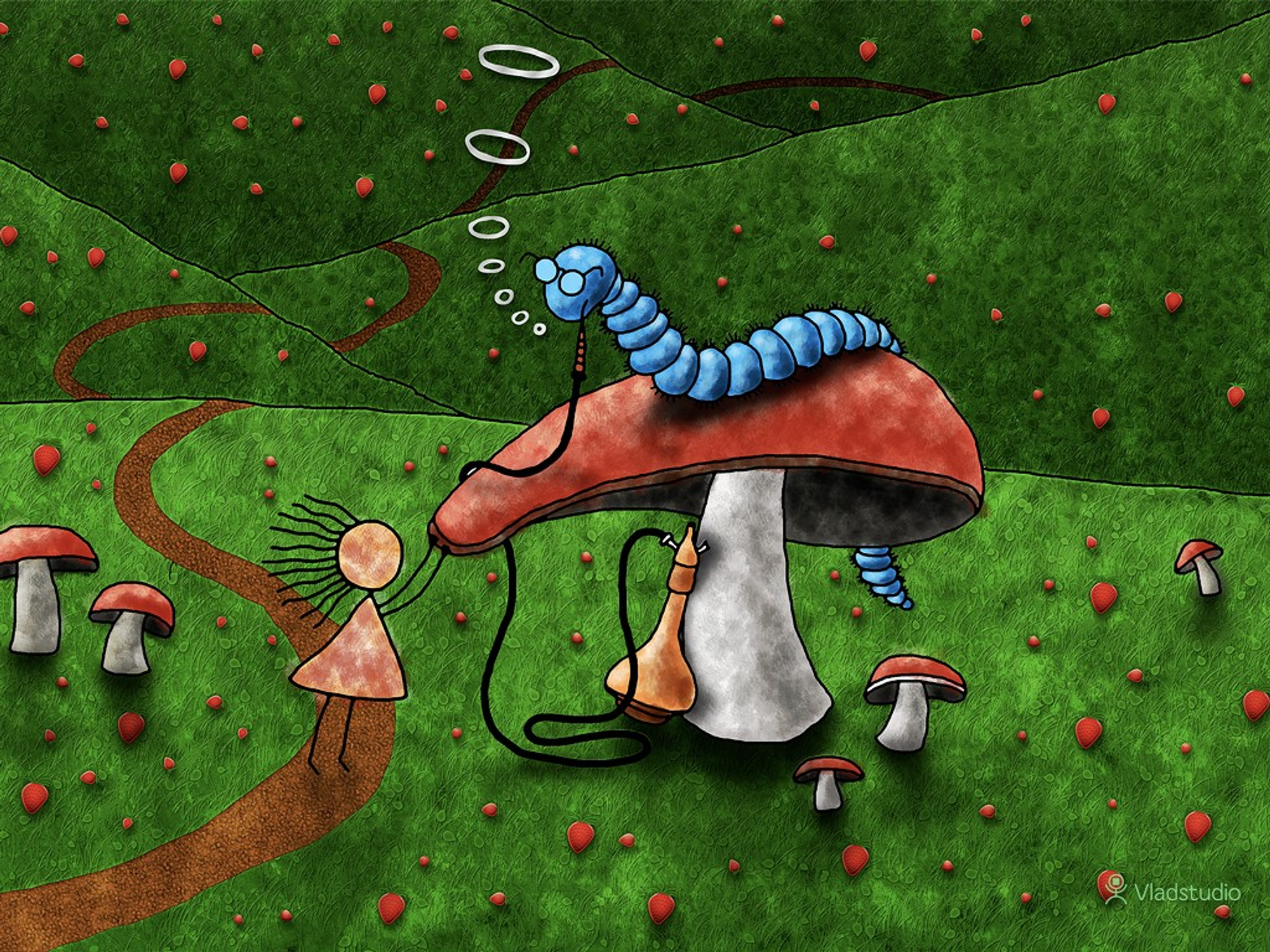 현실 세계를 생각하자면 버섯은 아무 행동을 하지 않는다. 앨리스가 버섯을 먹으면 행위의 주체는 앨리스이기 때문이다. 하지만 버섯의 입장에선 앨리스가 버섯을 먹은 만큼 줄어야한다.