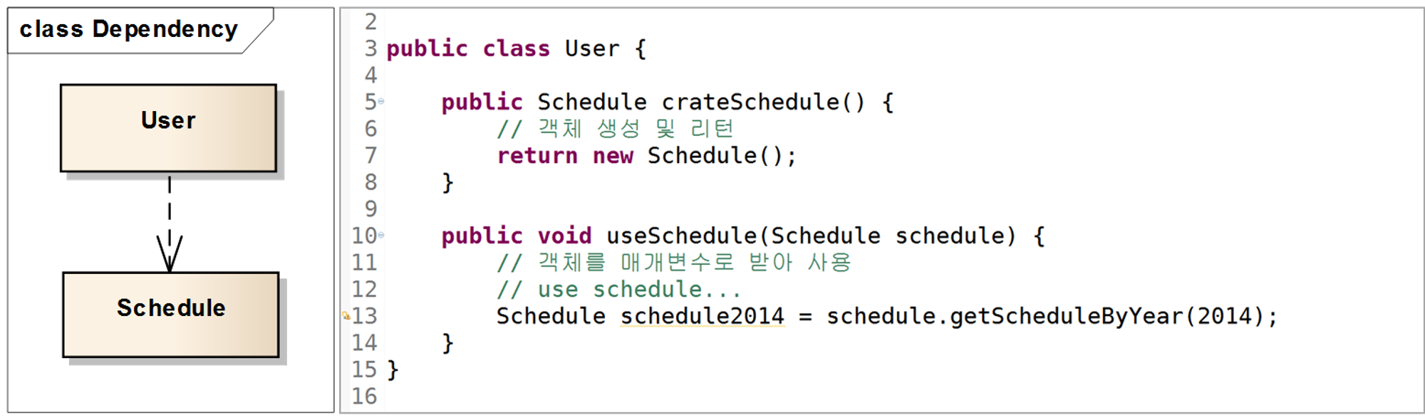 위에서도 언급했듯이, 의존 관계는 추상화를 표현할 수도 있고, 소유를 표현할 수도 있으며, 사용을 표현할 수도 있다.