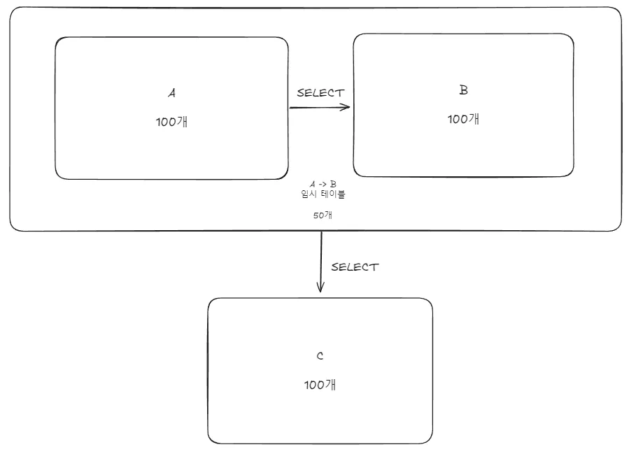 임시 테이블을 포함한 SQL의 테이블들은 집합 개념이고, 이를 생각해본다면 어렵지 않게 구현이 가능하다! 명령어는 잘 생각해보자.