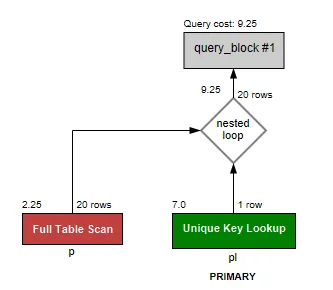 직관적으로 빨간색은 오래 걸리는 작업이고, 초록색은 빠른 작업이다. person 테이블에 오래 걸리는 작업인 Full Table Scan이 실행된 이유는 무엇일까? DBMS가 관계성을 모르기 때문이다. 비교를 위해서 person 테이블의 pl 속성에 인덱스를 추가하고 JOIN을 시도해보자.