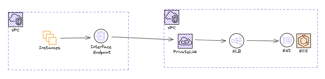 이러한 PrivateLink를 통한 연결을 위해선 ECS 서비스 태스크의 네트워크 모드는 `awsvpc`모드로 설정되어 컨테이너 인스턴스에 ENI가 할당되어야 해당 인스턴스가 NLB로부터 라우팅 될 수 있다.