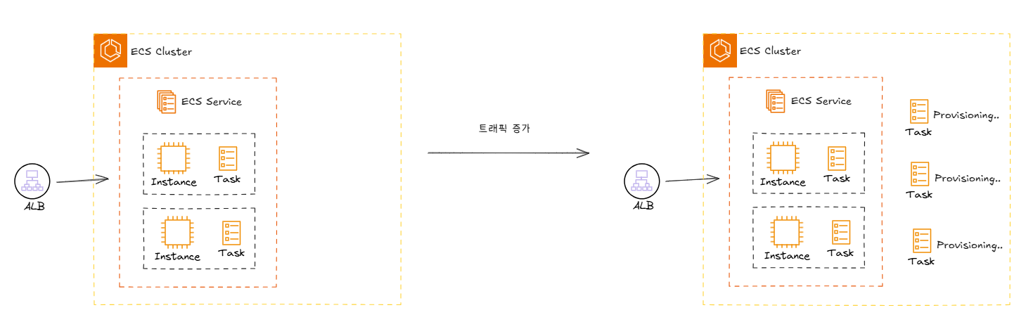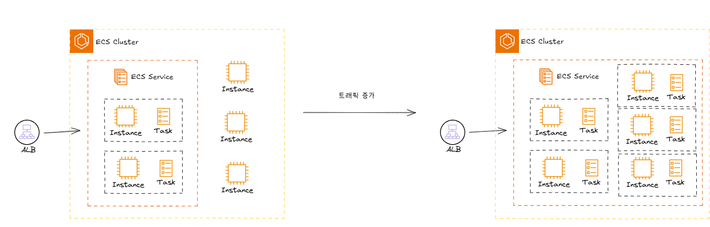기존의 ASG와의 차이점은, EC2에 대한 ASG가 아니라 컨테이너 레벨의 태스크에 대한 오토스케일링을 수행한다는 것이다. Service Auto Scaling을 통해 태스크의 오토스케일링이 진행된다고 해도 EC2 인스턴스가 부족하면 인프라가 부족해서 실제로 배포할 물리적인 인프라 용량이 부족하게된다.