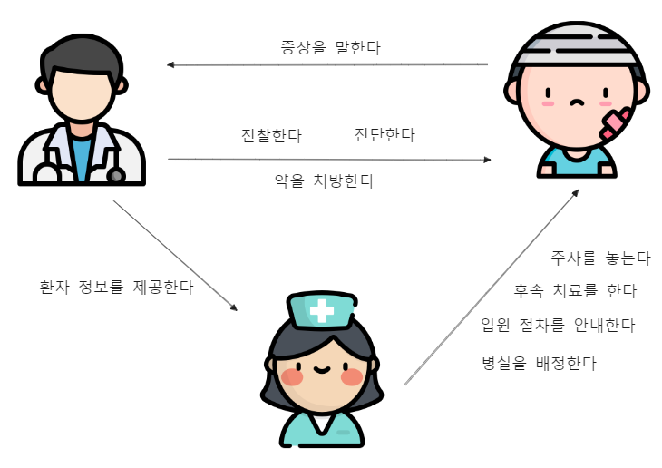 다음 환자는 진단 결과 입원까지 해야하는 환자라고 가정해보자. 그럼 의사의 할 일은 더욱 늘어나게 된다.